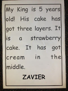 Last Month we read a big book called The King's Cake. We decided that it would be a fun idea to create our own King's birthday party. We got to make our own king's crowns and create our own King's birthday cake with cream, jam, sprinkles and marshmallows! It was so much fun.