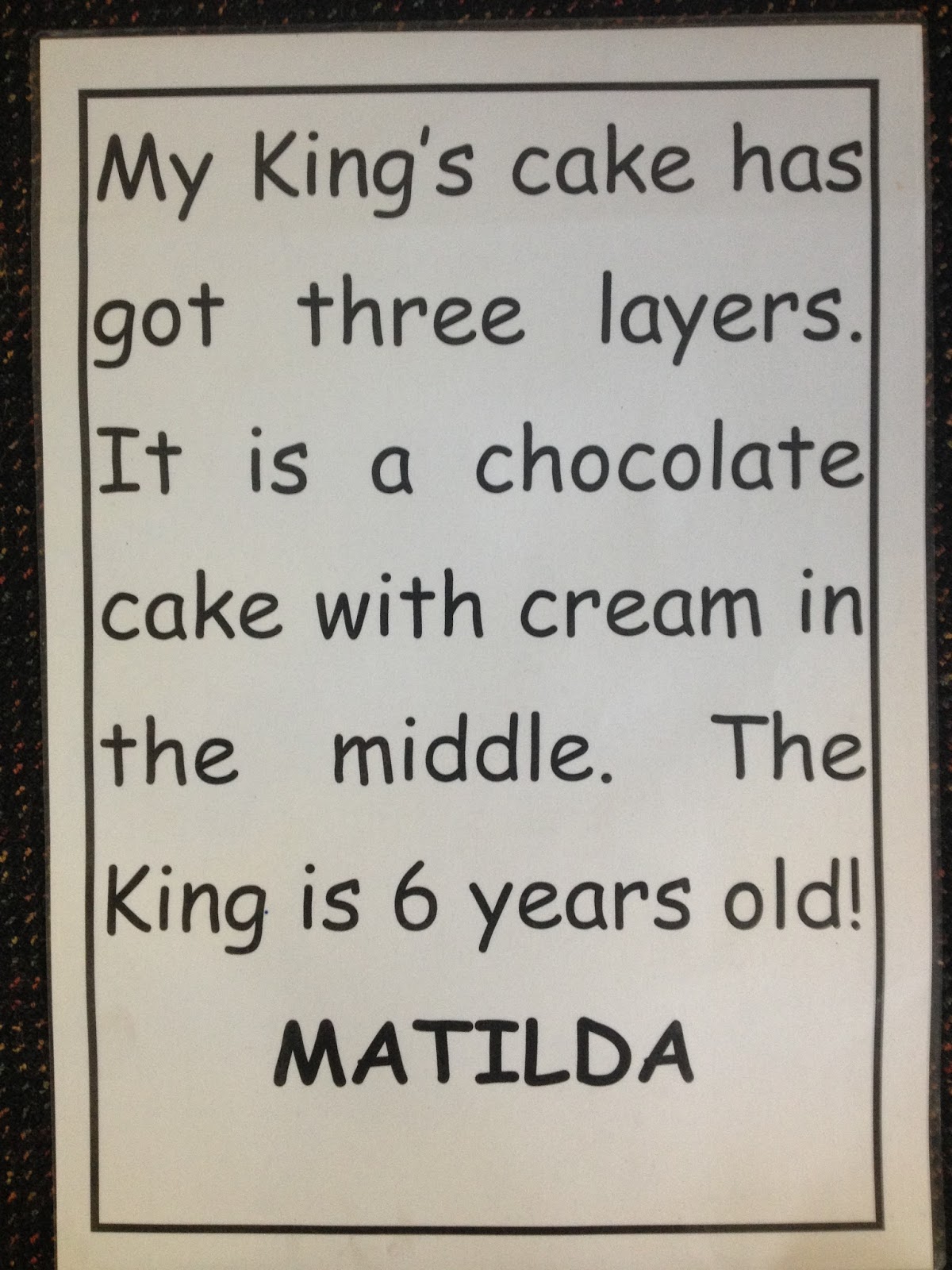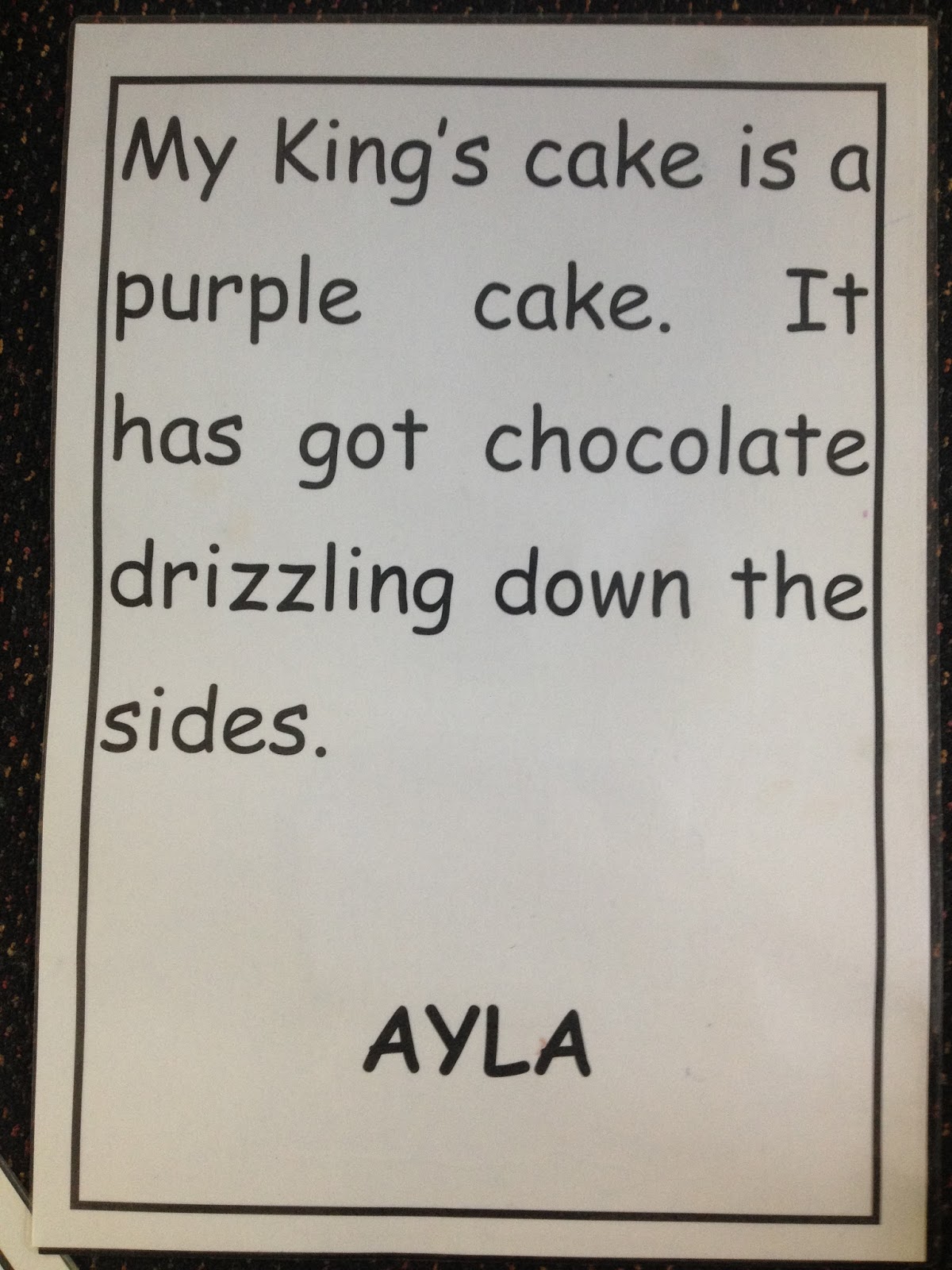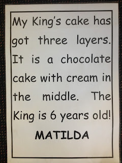 We also got to draw our own King's Cakes with pastel and dye and write a descriptive story about our cakes. We read these out at a presentation assembly. Everyone loved them!